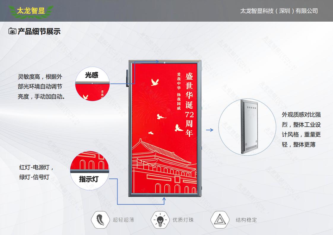 P3.846全鑄鋁單面LED燈桿屏,具有強大的內(nèi)容顯示能力,可支持視頻、圖片、文字投屏顯示,且支持后臺調(diào)節(jié)屏幕亮度,音響音量大小,軟件版本一鍵升級等;除此之外,太龍品牌還擁有自主服務(wù)器,可為客戶免費提供SDK二次開發(fā)對接協(xié)議以及整套售后服務(wù)應(yīng)用場景。是一款集互聯(lián)網(wǎng)、物聯(lián)網(wǎng)、遠(yuǎn)程交互等功能的戶外終端設(shè)備,它具備外觀靚麗、輕盈、時尚、亮度高、高顯色系數(shù)、防水、防爆、防雷等特點的視頻播放裝置,該型材鋁智慧燈桿屏適用于各高速、交通要道、景區(qū)、賽事場館等。 立即咨詢
