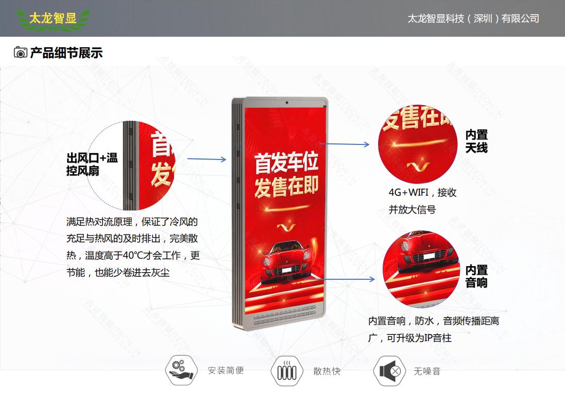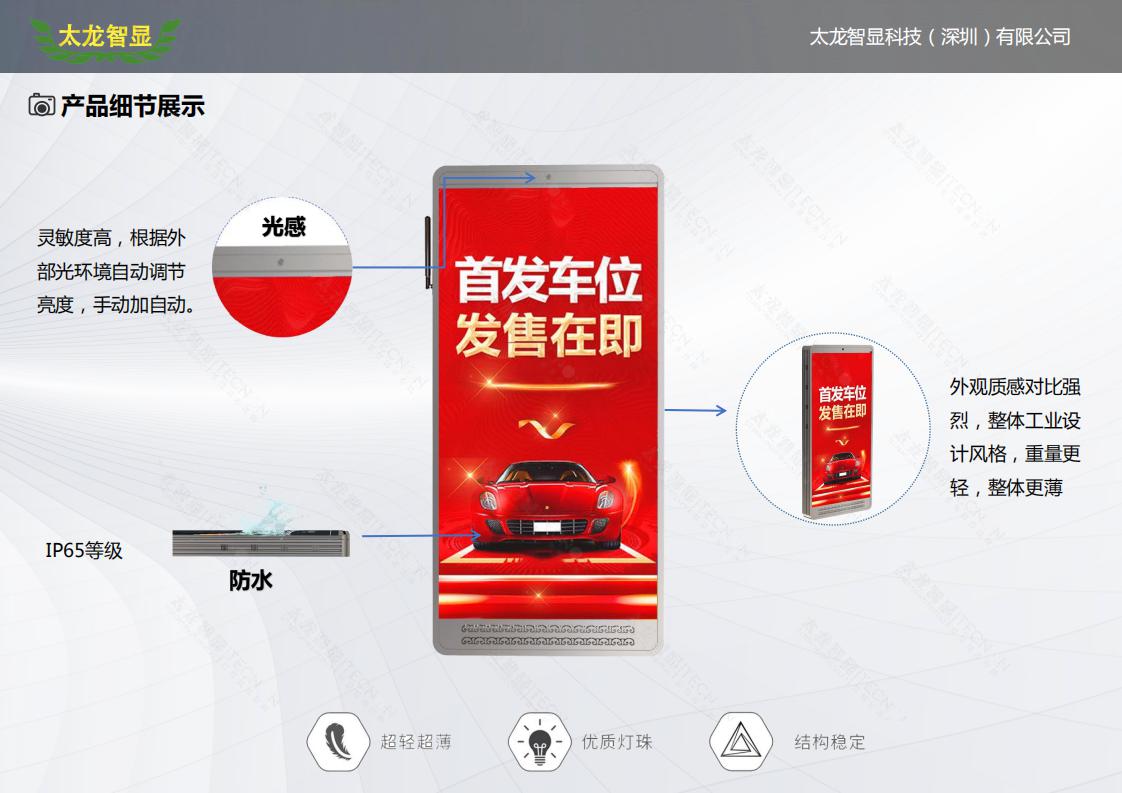 P3.846LED燈桿屏,顯示尺寸為800*1600mm,是一款依托互聯(lián)網(wǎng),物聯(lián)網(wǎng)等信息技術(shù)為基礎(chǔ),作為智慧城市的顯示終端,能夠?qū)崿F(xiàn)遠(yuǎn)程集群管理操控的戶外終端設(shè)備.箱體采用鋁材質(zhì),箱體輕薄,安裝簡(jiǎn)單操作方便,適配于不同樣式、高度的智慧燈桿。它具備外觀靚麗、輕盈、時(shí)尚、亮度高、高顯色系數(shù)、防水、防爆、防雷等特點(diǎn)的視頻播放裝置,全鑄鋁智慧燈桿屏適用于各高速、交通要道、景區(qū)、賽事場(chǎng)館等場(chǎng)景。