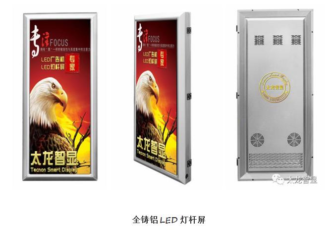 其中重磅推出的全鑄鋁LED燈桿屏和一帶一路全智能LED廣告機,是太龍智顯的精心之作,外觀、功能和工藝等方面都有重大升級,應(yīng)用到各種場景中,可以說將是對戶外智慧顯示的又一次革新。