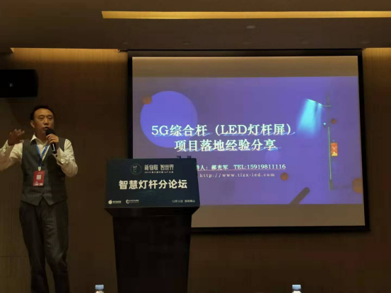 而作為今年大熱的智慧燈桿產(chǎn)業(yè)在此次峰會中也備受矚目和關(guān)注,并且還舉辦智慧燈桿分論壇,邀請了許多重磅行業(yè)大咖,分享重大干貨。其中,太龍智顯作為智慧燈桿產(chǎn)業(yè)促進會成員以及智慧燈桿項目的核心配套者,應(yīng)主辦方的邀請,太龍智顯公司總經(jīng)理郝光軍先生出席本次峰會,并發(fā)言分享了5G綜合桿適配LED燈桿屏項目落地經(jīng)驗。