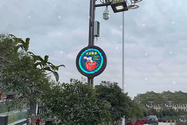 本次項(xiàng)目所選用的是太龍智顯LED燈桿屏,太龍還根據(jù)平陽當(dāng)?shù)靥厣贫藢俜桨?,選用了圓形LED燈桿屏,做到因地制宜定制燈桿屏的外形,打造當(dāng)?shù)靥厣?/span>