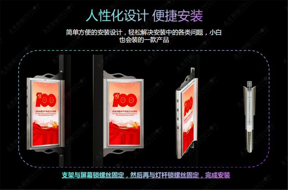 P3.846不銹鋼700*1400mm雙面LED燈桿屏,它具備外觀靚麗、輕盈、時尚、亮度高、高顯色系數(shù)、防水、防爆、防雷等特點。箱體采用獨有的外形設(shè)計,外觀靚麗,輕盈時尚。采用標準化模組拼裝,燈面灌膠技術(shù),做到防水、防塵,能完美適用于戶外環(huán)境。燈桿屏上提前預(yù)留了專門的燈桿適配結(jié)構(gòu),安裝過程簡單快捷,維護方便。加上輕便化的設(shè)計使燈桿屏能與智慧燈桿完美的結(jié)合。 立即咨詢