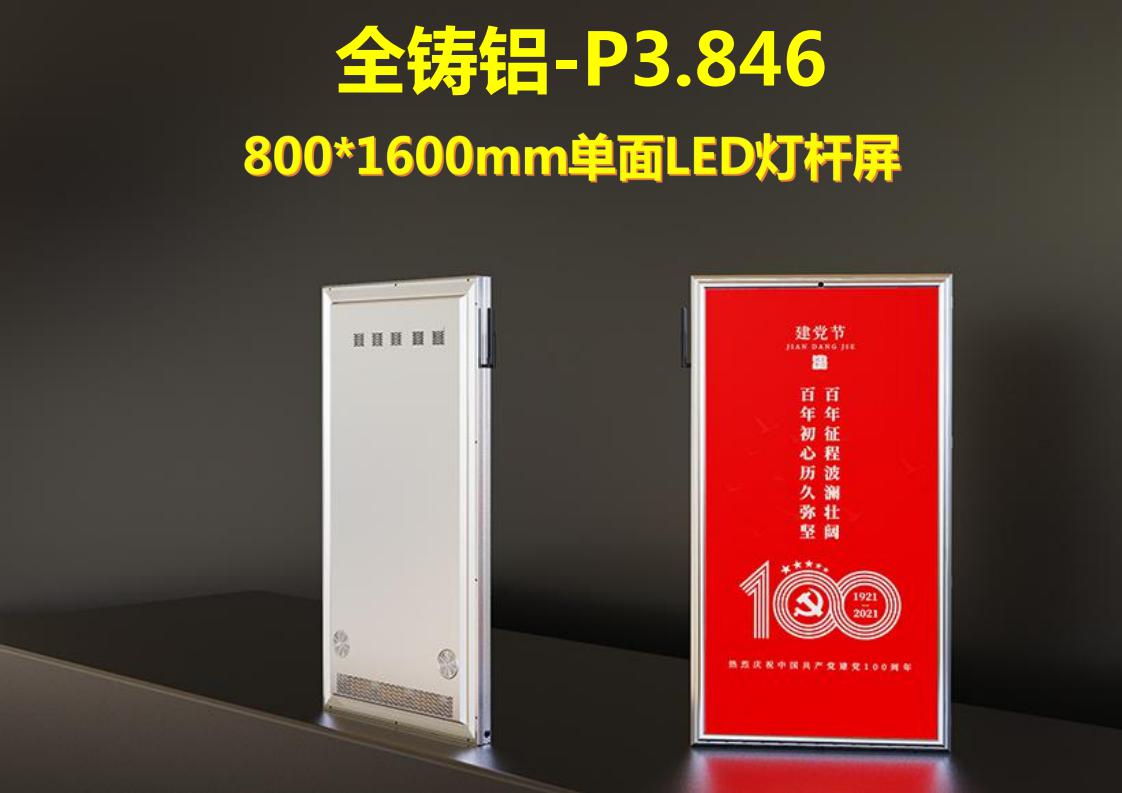 P3.846全鑄鋁800X1600單面LED燈桿屏
