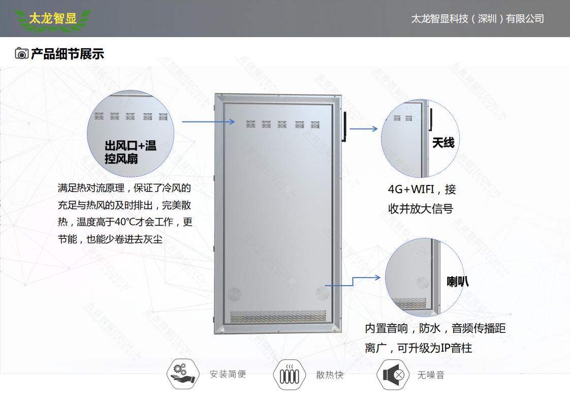 P3.846全鑄鋁單面LED燈桿屏,具有強大的內(nèi)容顯示能力,可支持視頻、圖片、文字投屏顯示,且支持后臺調(diào)節(jié)屏幕亮度,音響音量大小,軟件版本一鍵升級等;除此之外,太龍品牌還擁有自主服務(wù)器,可為客戶免費提供SDK二次開發(fā)對接協(xié)議以及整套售后服務(wù)應(yīng)用場景。是一款集互聯(lián)網(wǎng)、物聯(lián)網(wǎng)、遠(yuǎn)程交互等功能的戶外終端設(shè)備,它具備外觀靚麗、輕盈、時尚、亮度高、高顯色系數(shù)、防水、防爆、防雷等特點的視頻播放裝置,該型材鋁智慧燈桿屏適用于各高速、交通要道、景區(qū)、賽事場館等。 立即咨詢