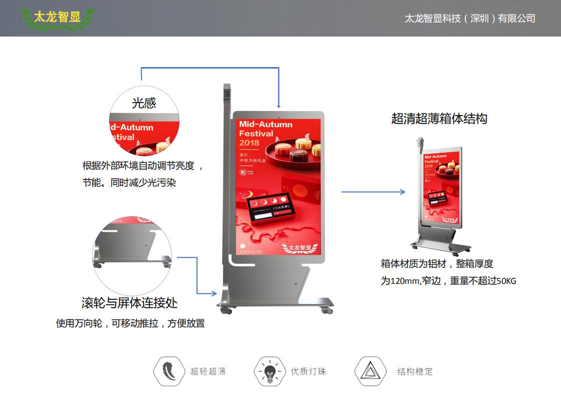 公司以研發(fā)和營銷為核心的團(tuán)隊(duì),窮盡當(dāng)下市面上的新材料,新技術(shù),新功能以及新理念,從而打造出來每一款都“有血有肉有智慧”的智能LED廣告機(jī)!我們遵循市場(chǎng)的規(guī)律,做民生工程,以符合國家政策的理念來把控產(chǎn)品的質(zhì)量,這樣才能做大做強(qiáng)!以打造出更輕薄,更美觀,更節(jié)能,更智能以及更便宜的智能LED廣告機(jī)為己任!